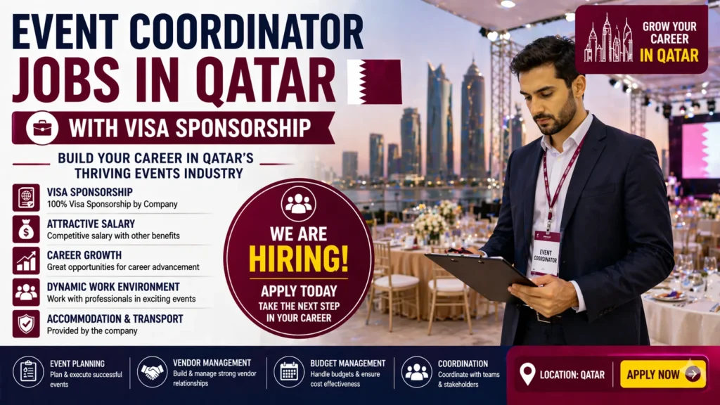 Event coordinator jobs in Qatar with visa sponsorship in 2026 offer an excellent opportunity for creative and organized individuals looking to work in a dynamic and growing industry. With increasing demand for events across corporate, hospitality, and entertainment sectors, these roles provide stability and career advancement.
